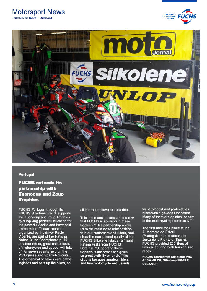 Esta é a segunda temporada consecutiva que a FUCHS patrocina estes troféus. “Esta parceria permite-nos manter relações próximas com os nossos clientes e pilotos, e mostrar a excecional qualidade dos lubrificantes FUCHS Silkolene“, disse Fátima Prata da FUCHS Portugal.